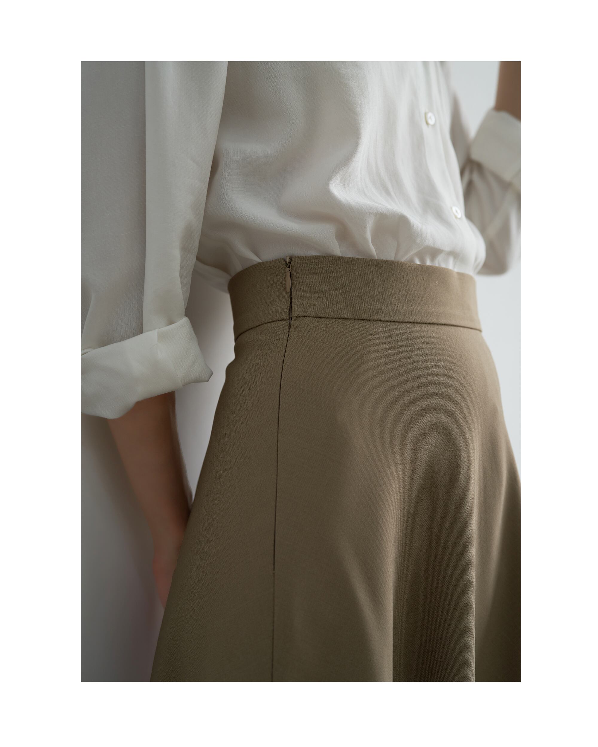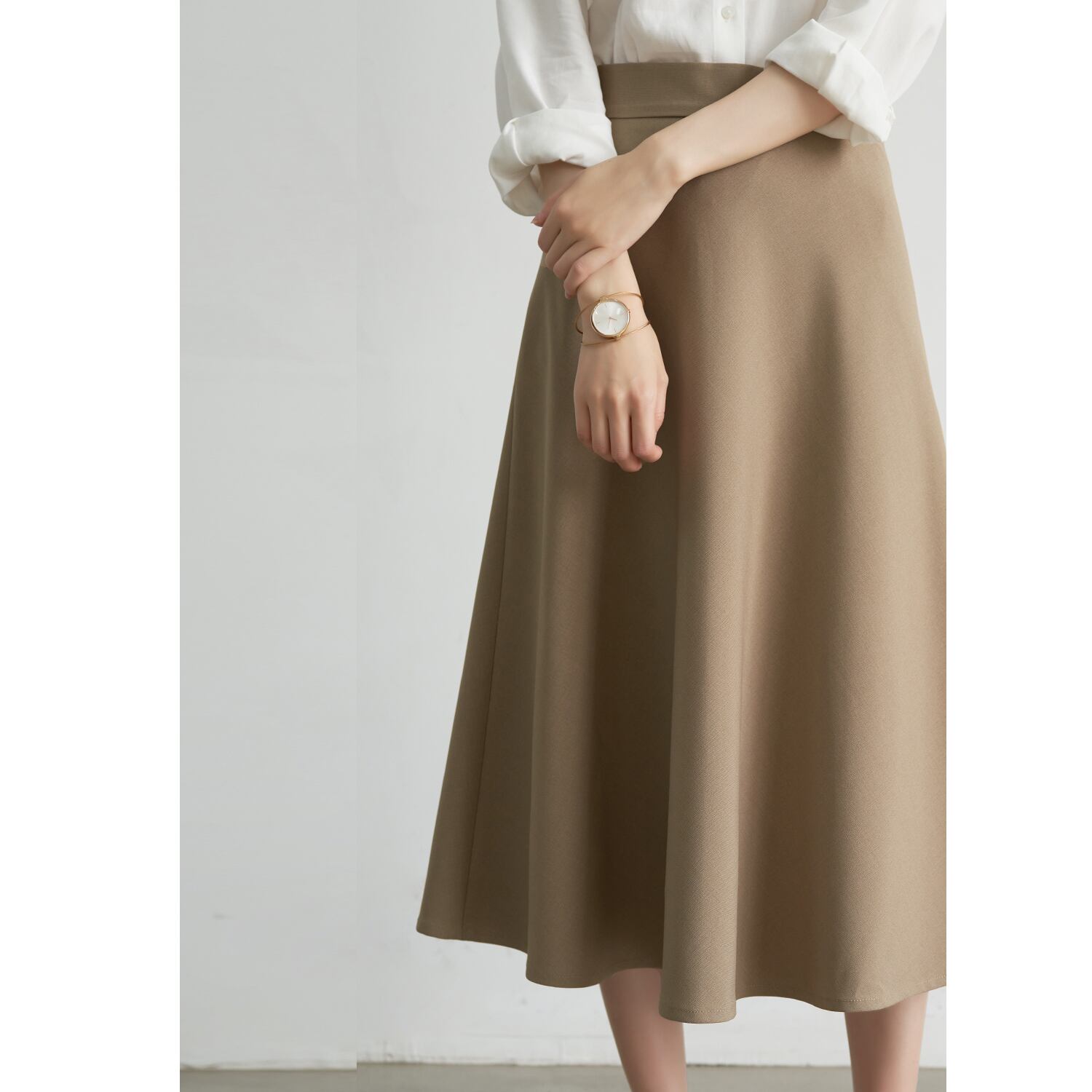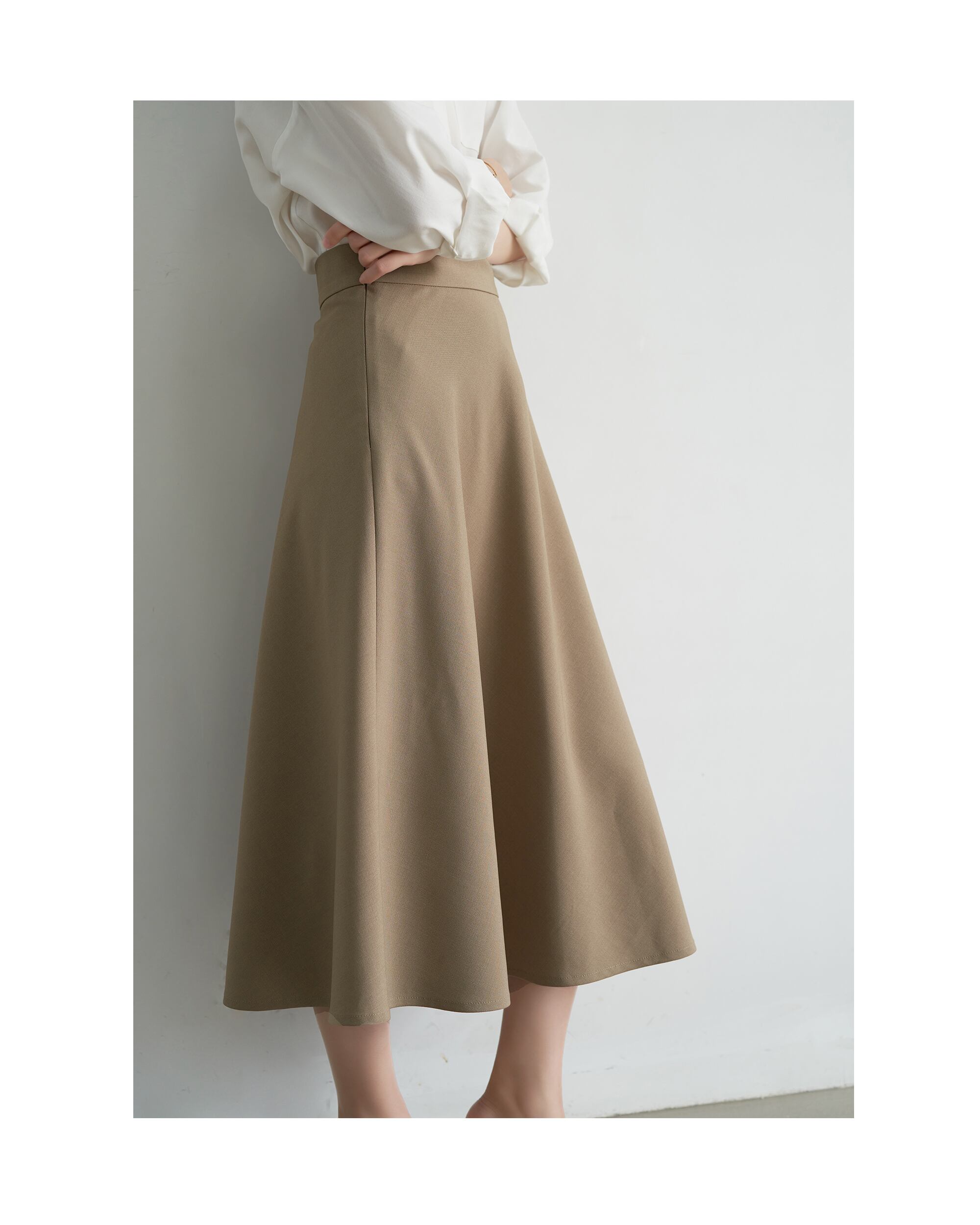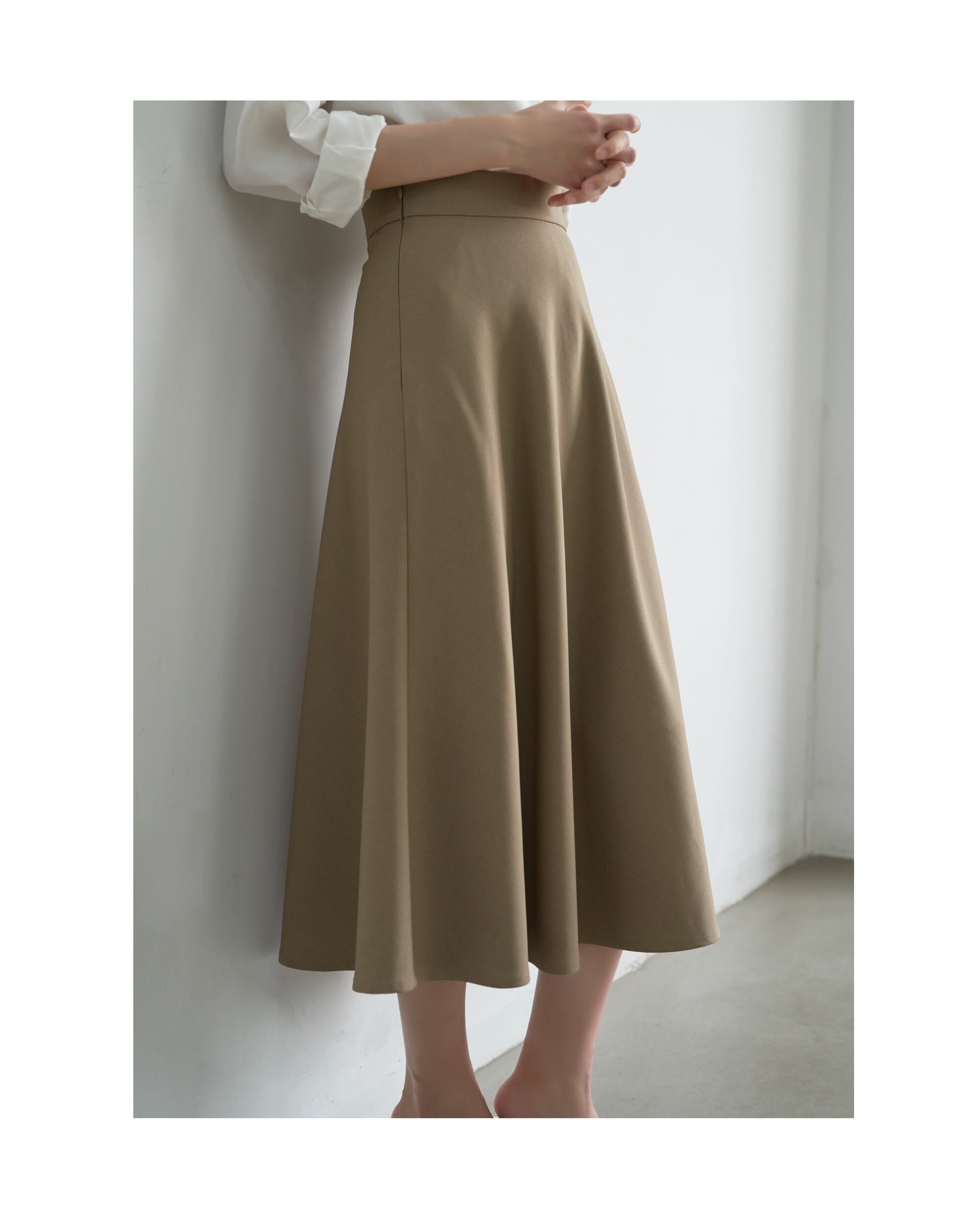 ドレープ感を活かしたフレアシルエットで、歩くたびにふわりと美しく揺れます。