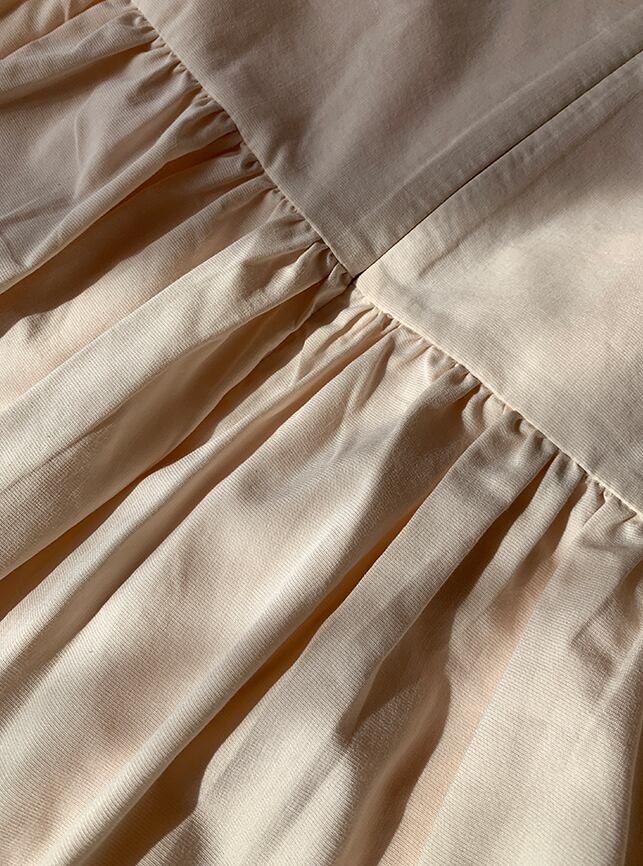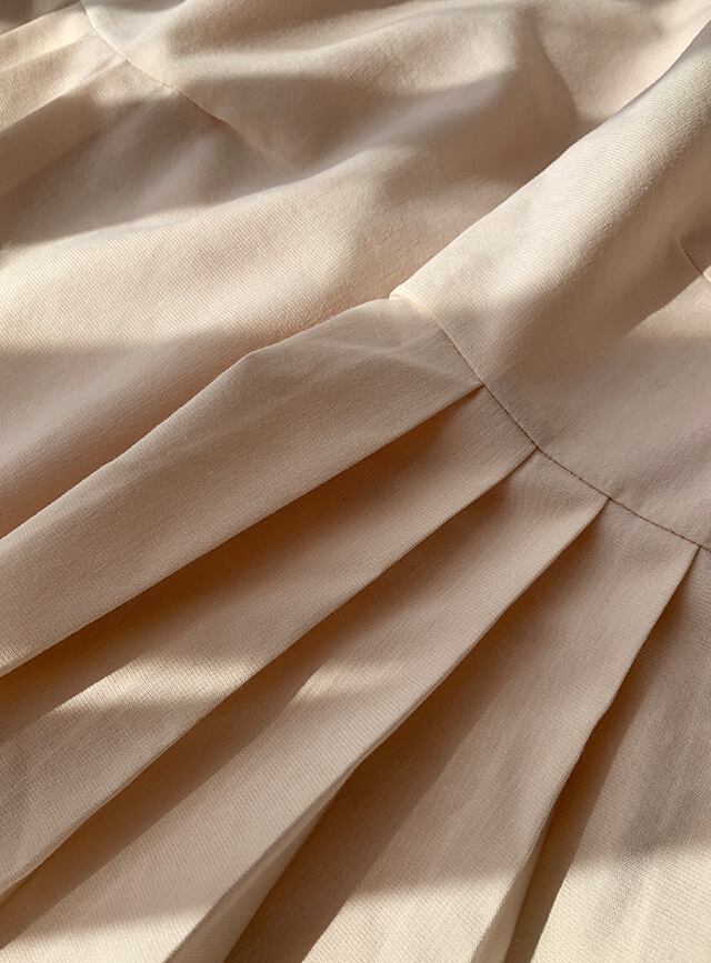 ふんわりとした軽い素材で広がるフレアシルエットが可愛いワンピース。