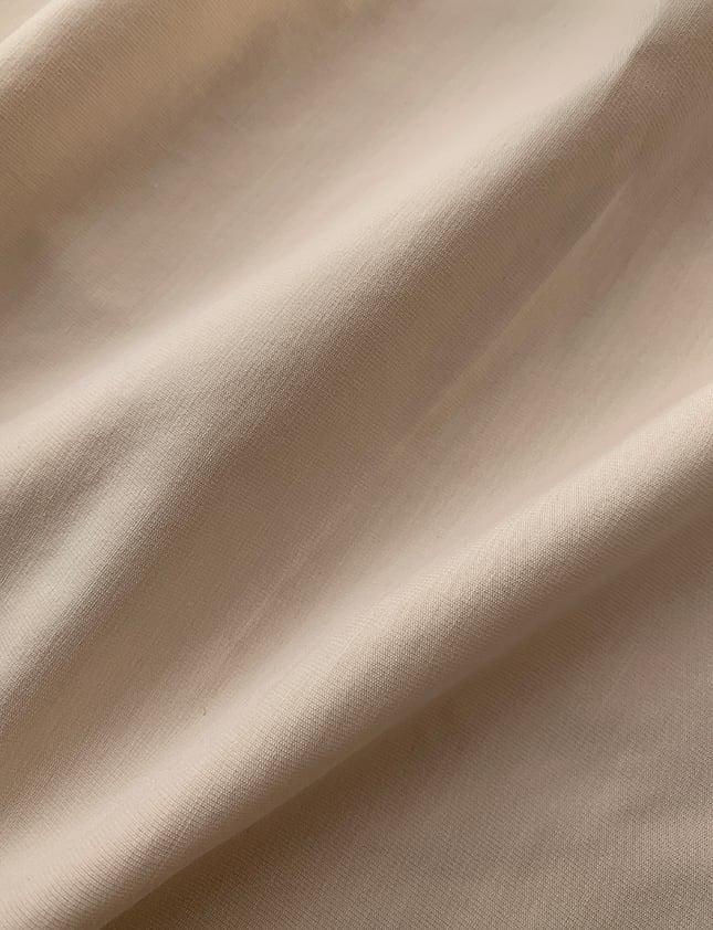 ウエストにはサイドタックが施され、シンプルながらも動きのある印象に。