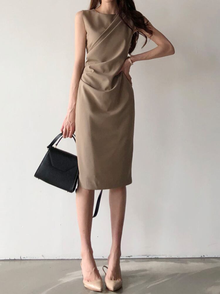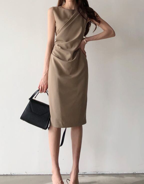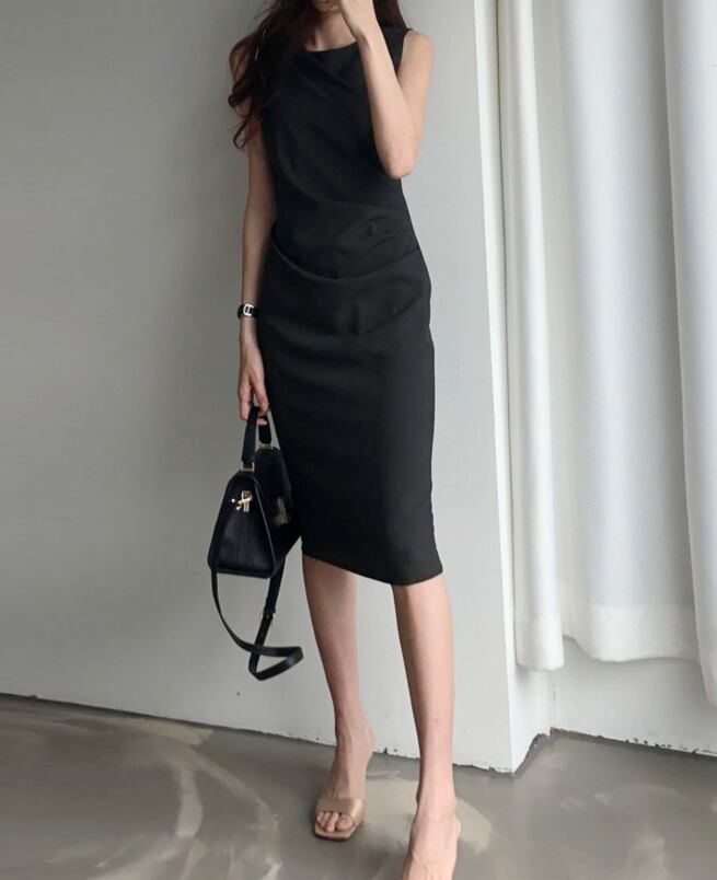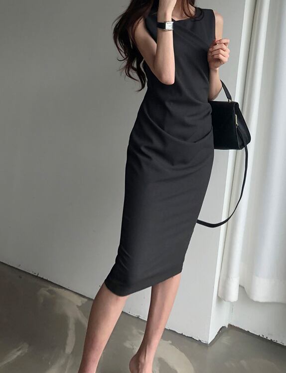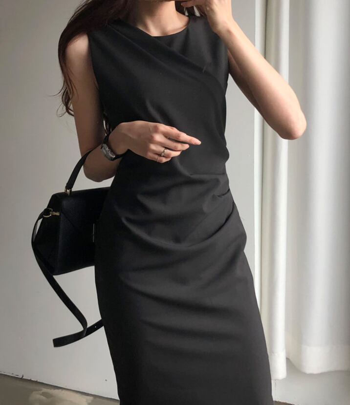 ノースリーブギャザーワンピース ワンピース ワンピドレス 膝丈 ひざ丈 袖なし ノースリーブ ラウンドネック スリム タイト 細身 Iライン かわいい 大人可愛い きれいめ シンプル カジュアル 大人 上品 おしゃれ お洒落 大人可愛い 大人女子 こなれ感 ラフ ラブリー キュート ガーリー 個性的 モダン 主役級 存在感 無地 春 夏 秋 10代 20代 30代 レディース OL 通勤 学生 通学 デート お出かけ 女子会 着回し 普段使い 重ね着 韓国系 オルチャン サイズ S M L 色展開 黒