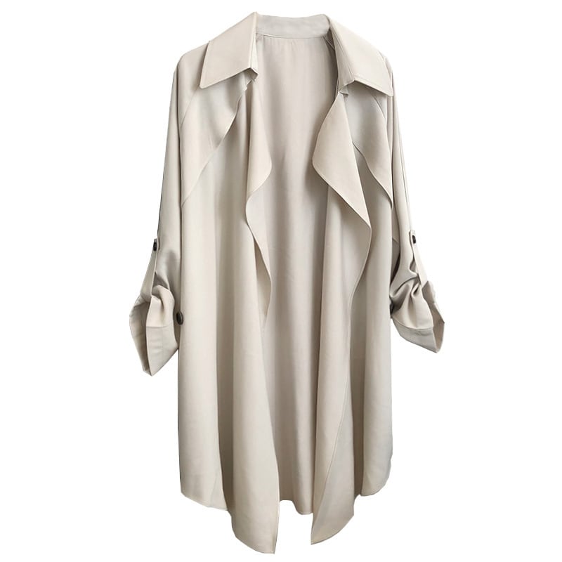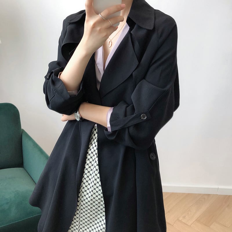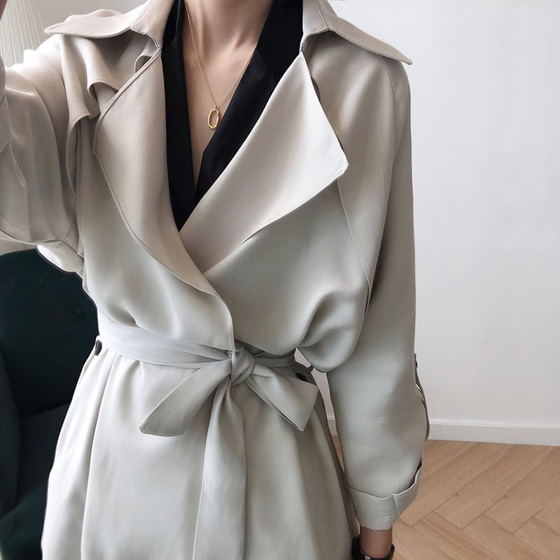 動きのある滑らかな素材感がエレガントなトレンチコート。