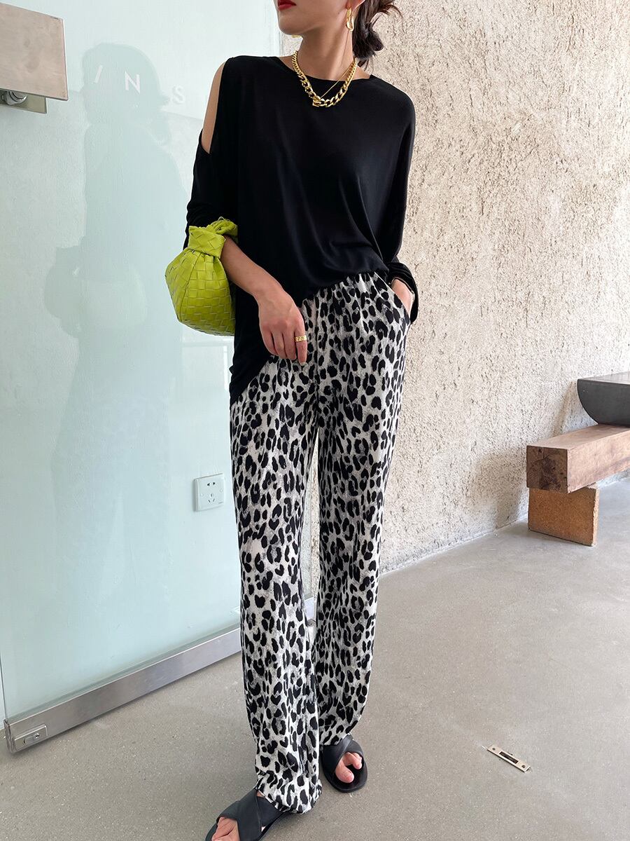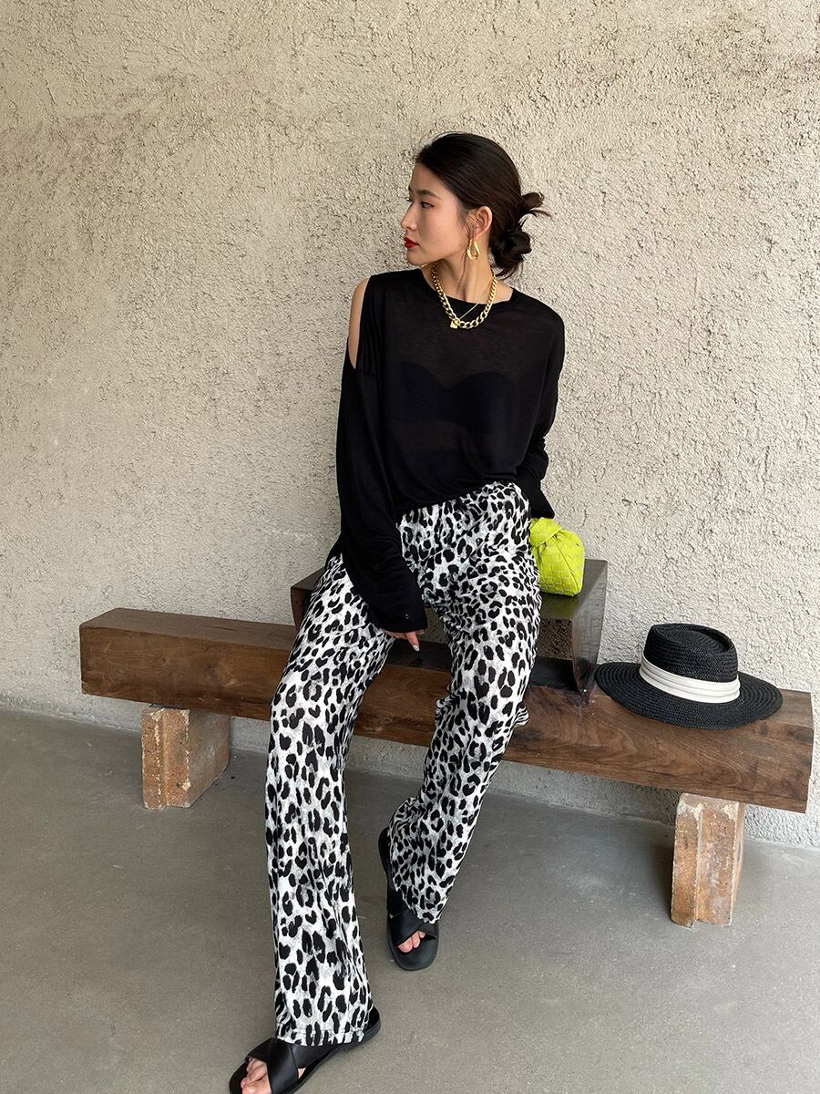レオパード柄でスタイリッシュに仕上げたパンツ。