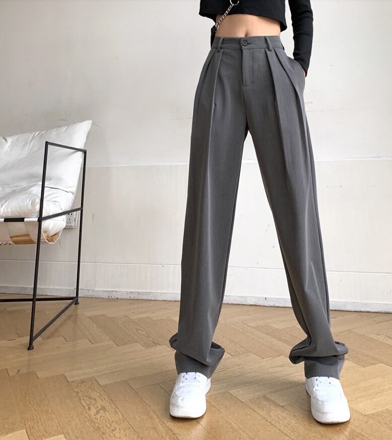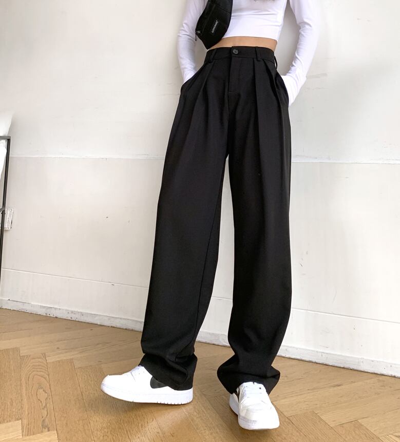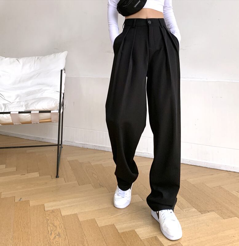 シンプルシルエットのタックパンツ。