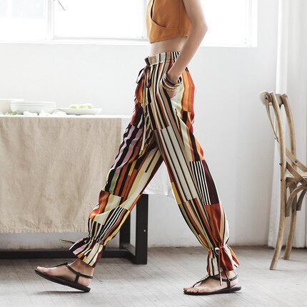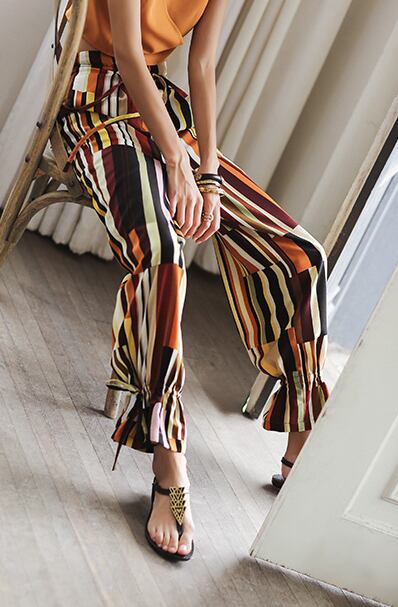 ゆったりとしたワイドなフィット感で着ても、足首の絞りリボンでハーレムパンツ風に着てもおしゃれ。