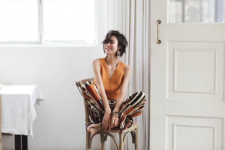 薄手のシフォン素材が夏にピッタリのリゾートスタイル!