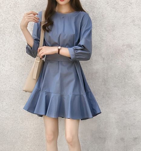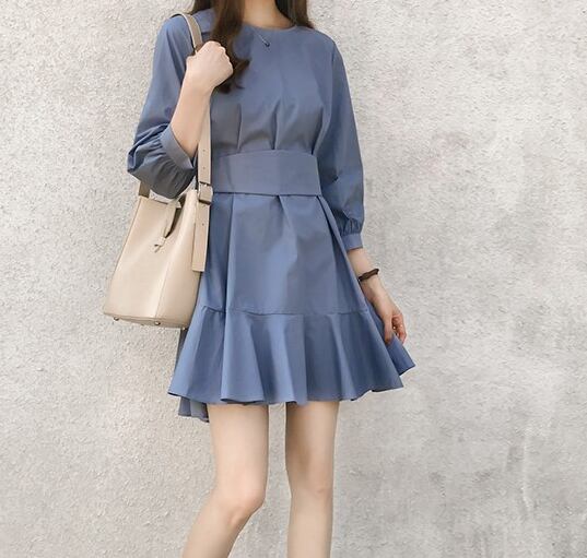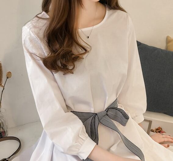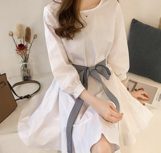 ワンピース シャツワンピース ミニ丈 袖あり 七分袖 ラウンドネック フレア Aライン プリーツ ウエストリボン ハイウエスト かわいい 大人可愛い シンプル おしゃれ 大人女子 こなれ感 ラブリー クール セクシー エレガント 存在感 抜け感 無地 春 夏 2022 10代 20代 レディース 学生 デート お出かけ 休日 着回し 普段使い 韓国系 ファッション モテ 脚長 新作 インスタ映え M L XL 2XL 3XL 4XL 色展開 ホワイト ブルー