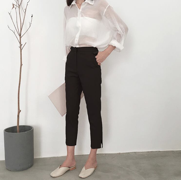 シンプルで大人可愛いハイウエストパンツ。
