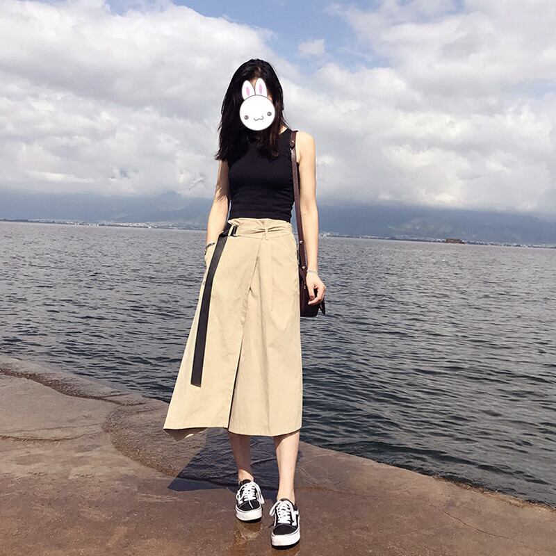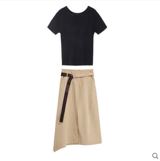 ツーピースセット トップス スカート Tシャツ 膝下 ミモレ丈 袖あり 半袖 ラウンドネック Aライン アシンメトリー ベルト スリット 2点セット ツーピース シンプル カジュアル おしゃれ お洒落 こなれ感 無地 春 夏 秋 10代 20代 30代 40代 レディース 女性用 ママ デート お出かけ 女子会 休日 旅行 着回し 普段使い 楽ちん S M L XL 黒 ブラック ベージュ