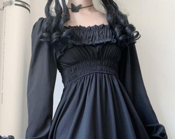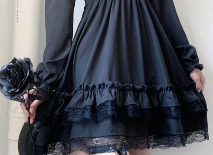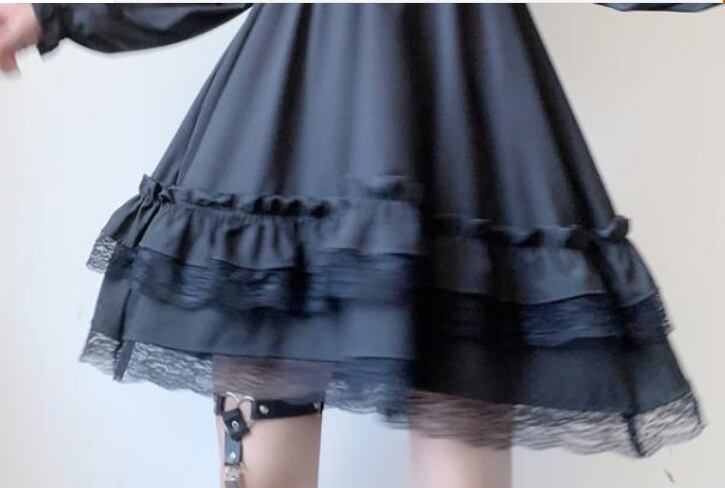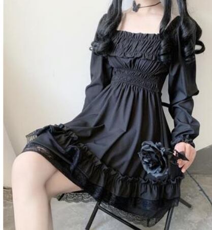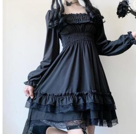 フリル膝丈ワンピース ワンピース ジャケット 膝丈 袖あり 長袖 スクエアネック フレア Aライン レース フリル ウエストマーク 綿 光沢 かわいい おしゃれ かっこいい レトロ 大人女子 こなれ感 ラブリー キュート 個性的 主役級 存在感 無地 春 秋 10代 20代 30代 40代 レディース ママ 女の子 お出かけ パーティー イベント 友達 着回し ファッション コーデ スタイル モテ プレゼント インスタ映え S M L XL 2XL 黒 ブラック