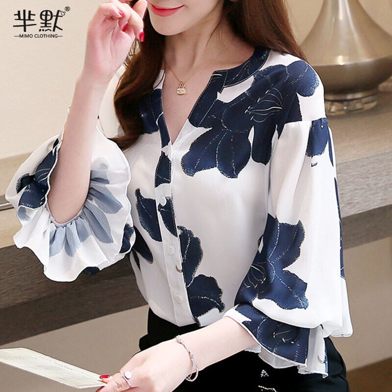 トップス ブラウス 白シャツ 白トップス 袖あり 7分袖 七分袖 Vネック ストレート 薄手 きれいめ 大人 上品 レトロ 大人女子 こなれ感 個性的 存在感 花柄 フラワー 春 夏 秋 20代 30代 40代 レディース 女性用 ママ 通勤 デート お出かけ 女子会 休日 着回し 普段使い 楽ちん S M L XL 2XL 白 ホワイト