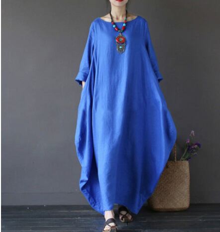 ゆったりロングワンピース ワンピース ロング丈 袖あり ラウンドネック Aライン 綿 光沢 かわいい 大人可愛い きれいめ シンプル 大人 上品 おしゃれ かっこいい レトロ 大人女子 こなれ感 個性的 クール セクシー 無地 春 夏 10代 20代 30代 40代 50代 レディース ママ 女の子 学生 通学 デート お出かけ 公園デビュー 休日 パーティー イベント 着回し 普段使い ファッション コーデ スタイル 楽ちん モテ L XL 2XL 3XL 4XL 5XL 白 黒 赤 青