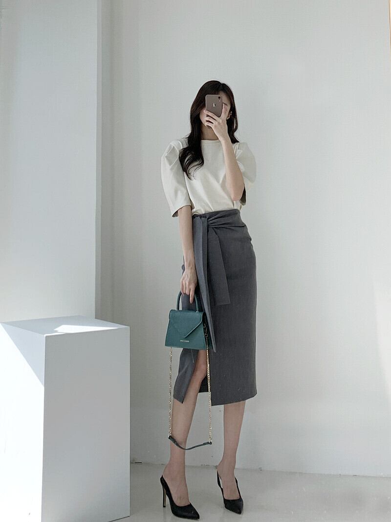 ハイウエストデザインで脚長効果抜群のタイトスカート。