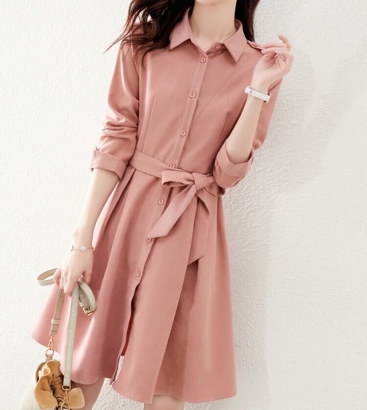 ワンピース シャツワンピース 膝上 袖あり 長袖 襟付き POLO襟 Aライン ウエストリボン ハイウエスト かわいい 大人可愛い シンプル カジュアル おしゃれ 大人女子 ラブリー キュート ガーリー 存在感 とろみ感 無地 春 秋 2021 10代 20代 30代 レディース デート お出かけ 女子会 休日 イベント 旅行 ホテル レストラン 着回し 普段使い オルチャン ファッション モテ 美脚 脚長 新作 トレンド インスタ映え サイズ S M L XL 色展開 ピンク