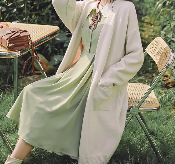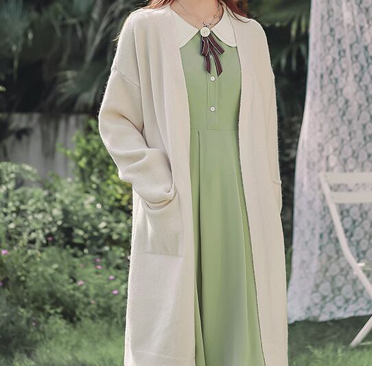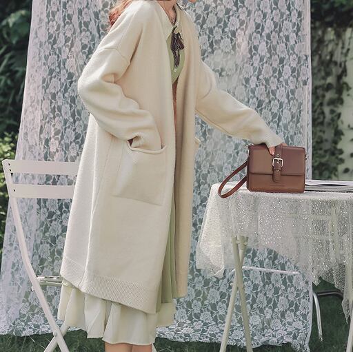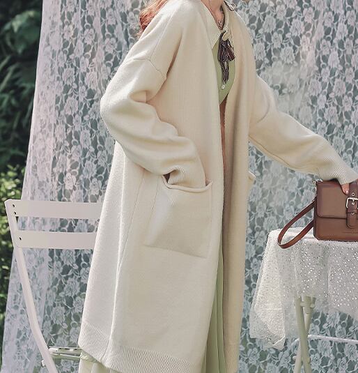 アウター カーディガン ロング丈 袖あり 長袖 ボリューム袖 Vネック ストレート もこもこ ポケット 前開き ニット かわいい 大人可愛い シンプル 上品 おしゃれ レトロ 大人女子 こなれ感 ラブリー キュート ルーズ エレガント 存在感 無地 秋 冬 2021 10代 20代 30代 レディース デート お出かけ 女子会 休日 イベント 旅行 着回し 普段使い 重ね着 韓国系 ファッション 暖かい モテ 新作 トレンド インスタ映え フリーサイズ 色展開 ベージュ