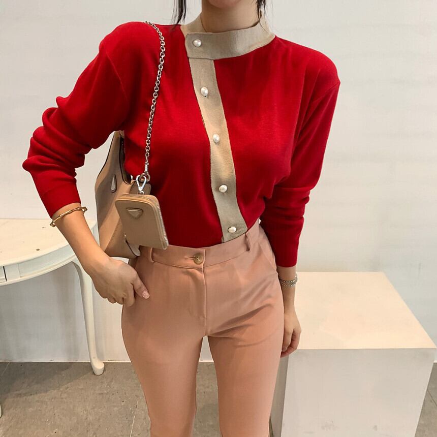 パールボタンニット トップス セーター 袖あり 長袖 ハイネック アシンメトリー リブ 綿 かわいい 大人可愛い きれいめ シンプル カジュアル 大人 上品 おしゃれ お洒落 大人可愛い 大人女子 こなれ感 ラフ ラブリー キュート ガーリー 個性的 モダン 主役級 存在感 無地 春 秋 10代 20代 30代 レディース OL 通勤 学生 通学 デート お出かけ 女子会 休日 着回し 普段使い 重ね着 色展開 白 ホワイト 黒 ブラック 赤 レッド アプリコット