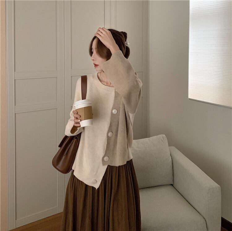 アシンメトリーカーディガン トップス カーディガン 袖あり 長袖 ラウンドネック アシンメトリー 前開き かわいい 大人可愛い きれいめ シンプル カジュアル 大人 上品 おしゃれ お洒落 大人可愛い 大人女子 こなれ感 ラフ ラブリー キュート ガーリー 個性的 モダン 主役級 存在感 無地 春 秋 10代 20代 30代 レディース 学生 通学 デート お出かけ 女子会 休日 着回し 普段使い 重ね着 サイズ S M L 色展開 灰色 グレー アプリコット
