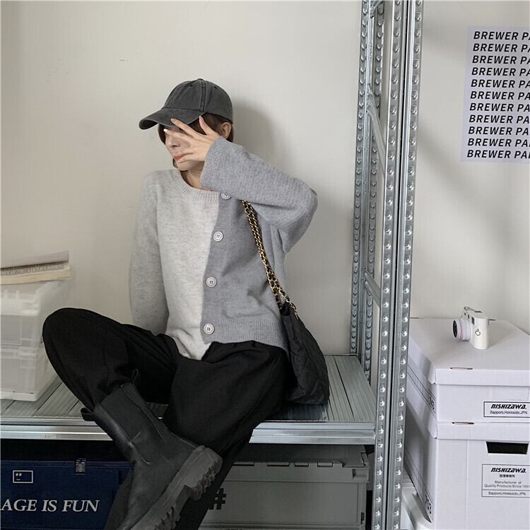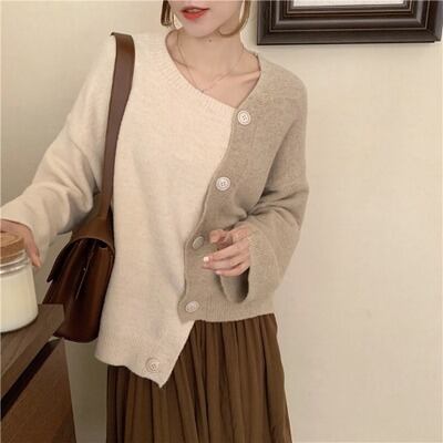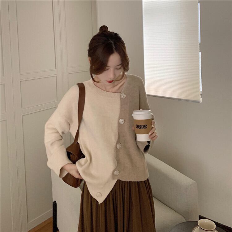 ゆったりオーバーサイズで着心地よいアシンメトリーデザインカーディガン。