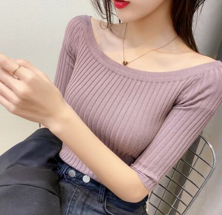 無地のシンプルデザインでオフショルダーとしても着られます。