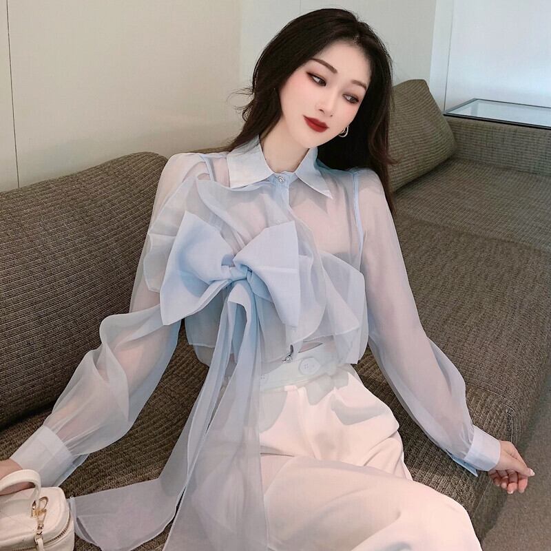 セットアップ シャツ ブラウス ロング ロング丈 袖あり 長袖 襟付き リボン 前開き 透け感 シースルー 上下セット 2点セット ツーピース かわいい 大人可愛い きれいめ シンプル カジュアル 大人 上品 おしゃれ お洒落 大人可愛い 大人女子 こなれ感 ラフ ラブリー キュート ガーリー 個性的 モダン 主役級 存在感 無地 春 秋 10代 20代 30代 レディース OL 通勤 学生 通学 デート お出かけ 女子会 休日 着回し 普段使い 重ね着 韓国系 オルチャン サイズ S M L ブルー
