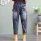 ウエストがゴムの刺繍の入ったジーンズ
