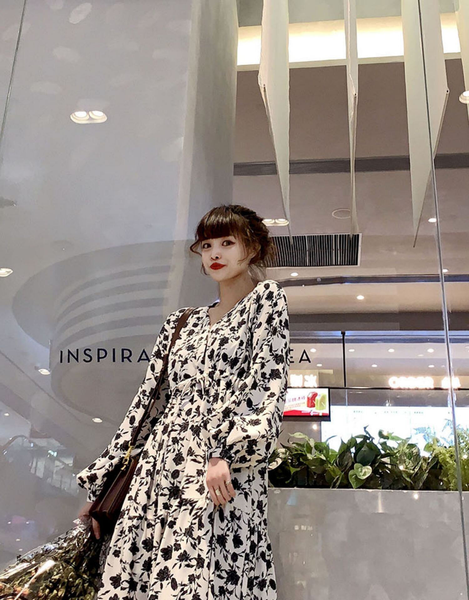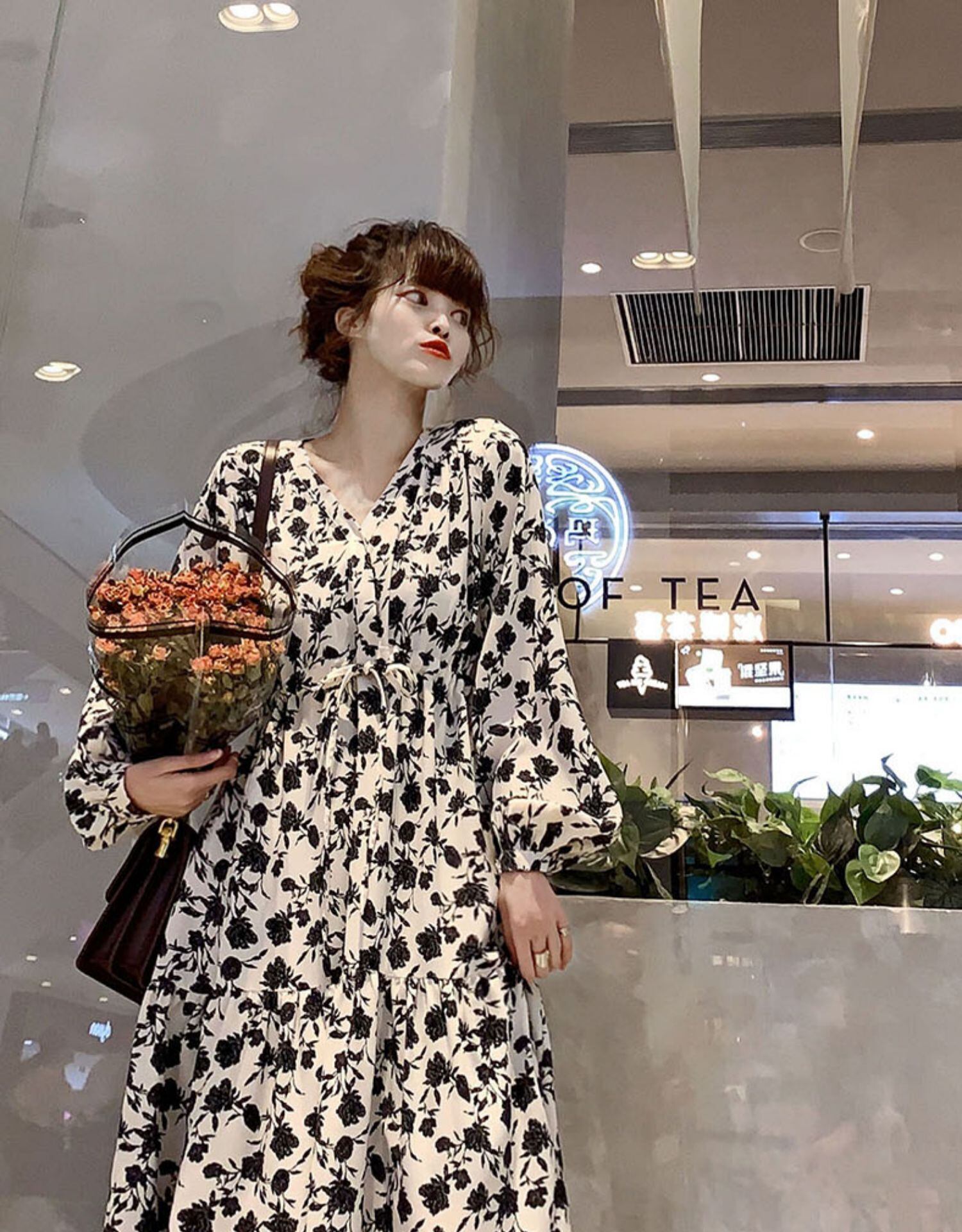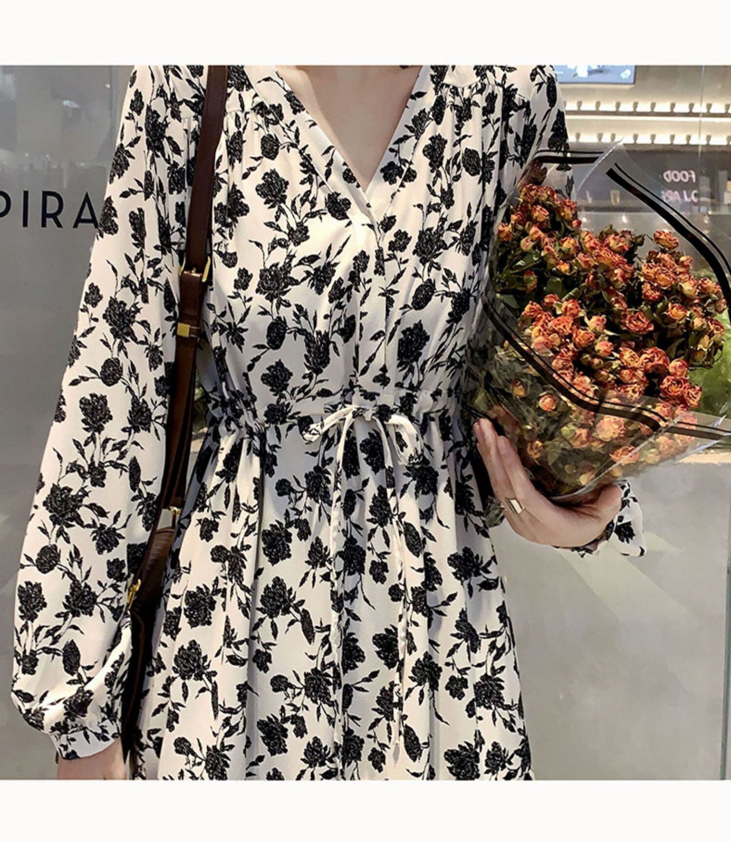 ワンピース全体に散った花柄模様がポイント。