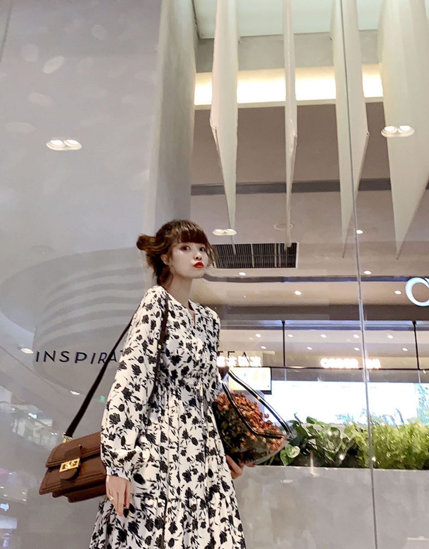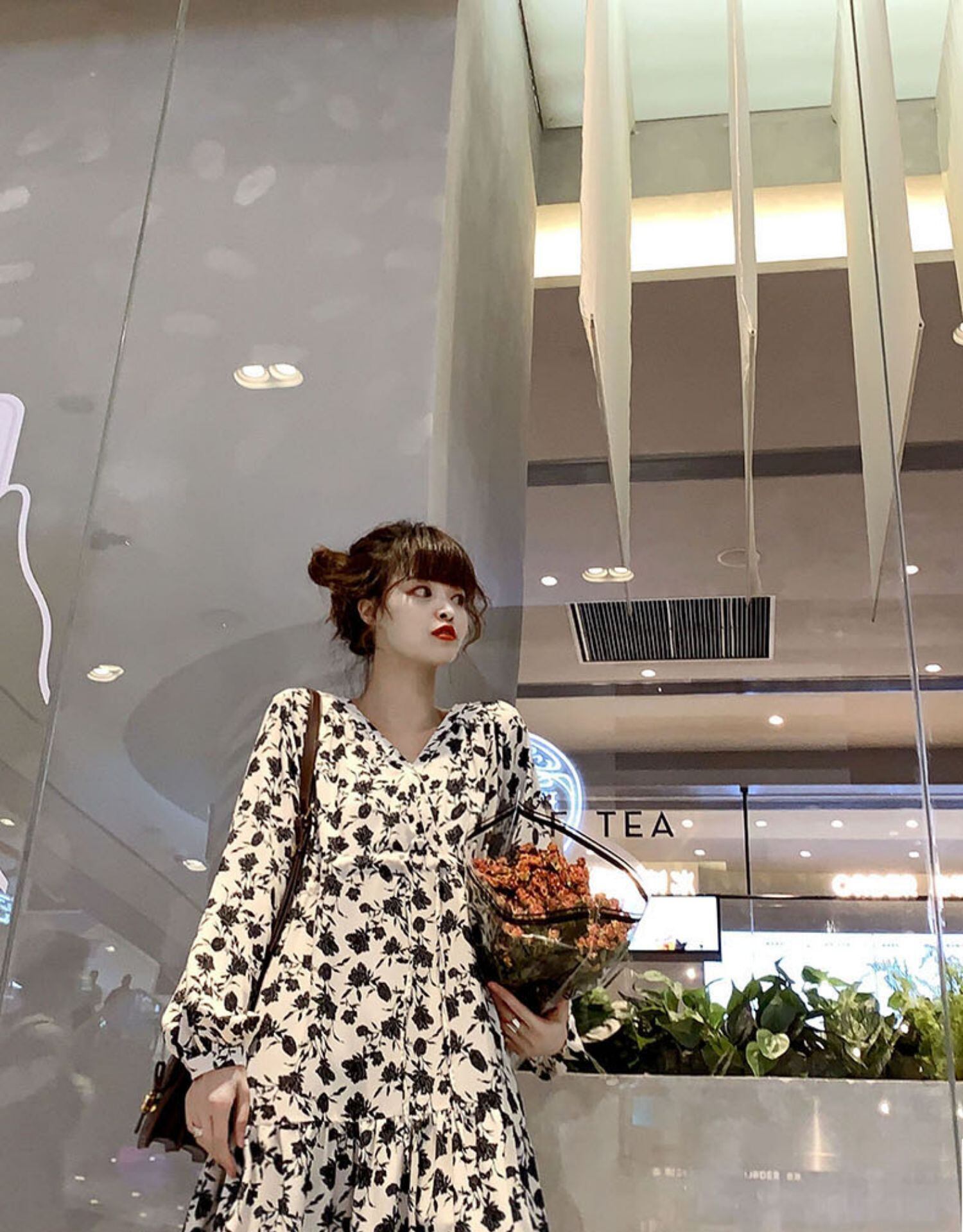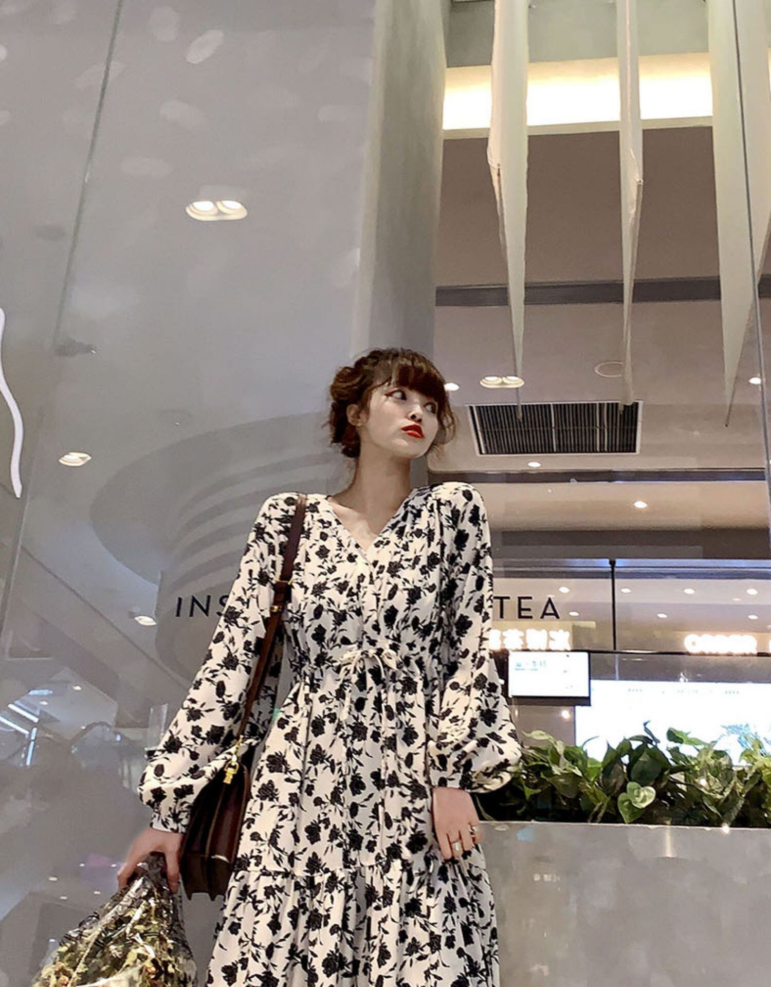 ワンピース全体に散った花柄模様がポイント。