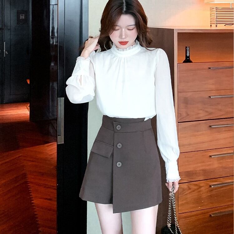 キュロットタイプで、動いても安心。シンプルながらも、大人可愛い雰囲気に仕上がります。ブラウスと合わせた綺麗めスタイルが、トレンド感があっておすすめです。