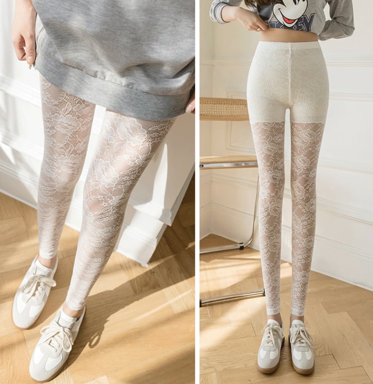花柄レースのレギンスパンツ。