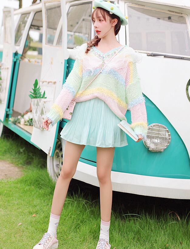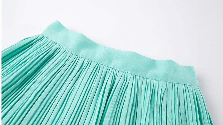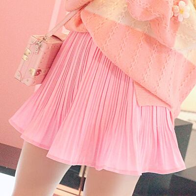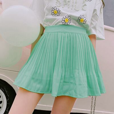 パステルカラーのミニ丈プリーツスカート。