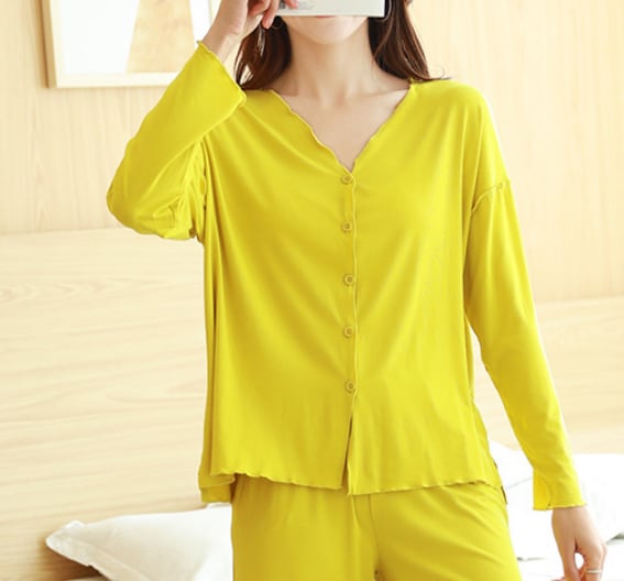 シンプルでさらりと着られる長袖と長ズボンのパジャマです。