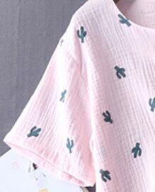 キュートなサボテン柄半袖トップスと長ズボンのセットです。