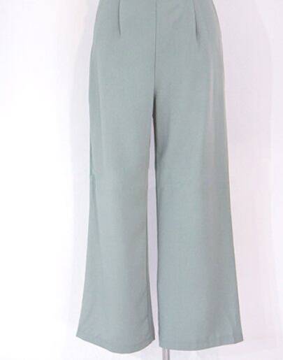 半袖トップスとロングワイドパンツのセットアップです。
