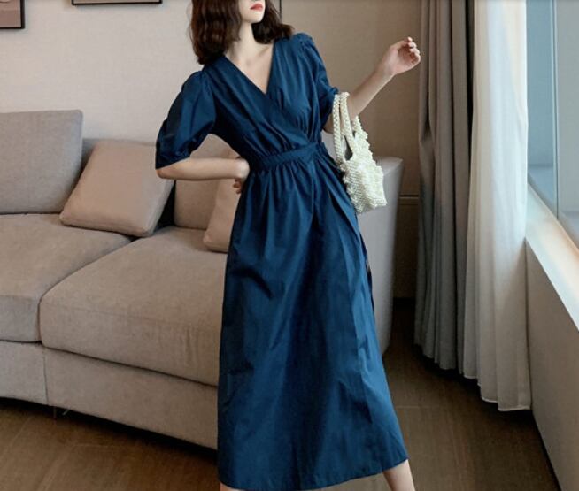 パフスリーブロングワンピース ワンピース ロング丈 袖あり 半袖 Aライン 綿 爽やか 大人スタイル かわいい 大人可愛い きれいめ シンプル カジュアル 大人 上品 おしゃれ かっこいい レトロ 大人可愛い 大人女子 ラフ ラブリー キュート 無地 春 夏 10代 20代 30代 40代 50代 レディース ママ 女の子 通勤 学生 通学 デート お出かけ 公園デビュー 女子会 イベント リゾート 旅行 着回し ファッション コーデ スタイル モテ S M L XL 2XL 黒 ブラック 青