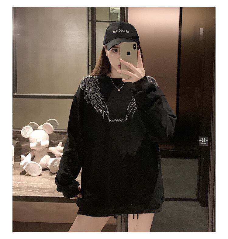 ラインストーントップス トップス プルオーバー トレーナー 袖あり 長袖 ラウンドネック かわいい 大人可愛い きれいめ シンプル カジュアル 大人 上品 おしゃれ お洒落 大人可愛い 大人女子 こなれ感 ラフ ラブリー キュート ガーリー 個性的 モダン 主役級 存在感 無地 ボーダー 春 秋 冬 10代 20代 30代 レディース 学生 通学 デート お出かけ 女子会 休日 着回し 普段使い 重ね着 韓国系 オルチャン サイズ S M L XL 2XL 色展開 黒 ブラック