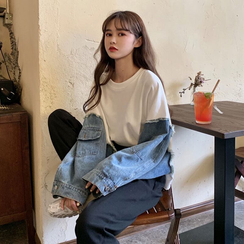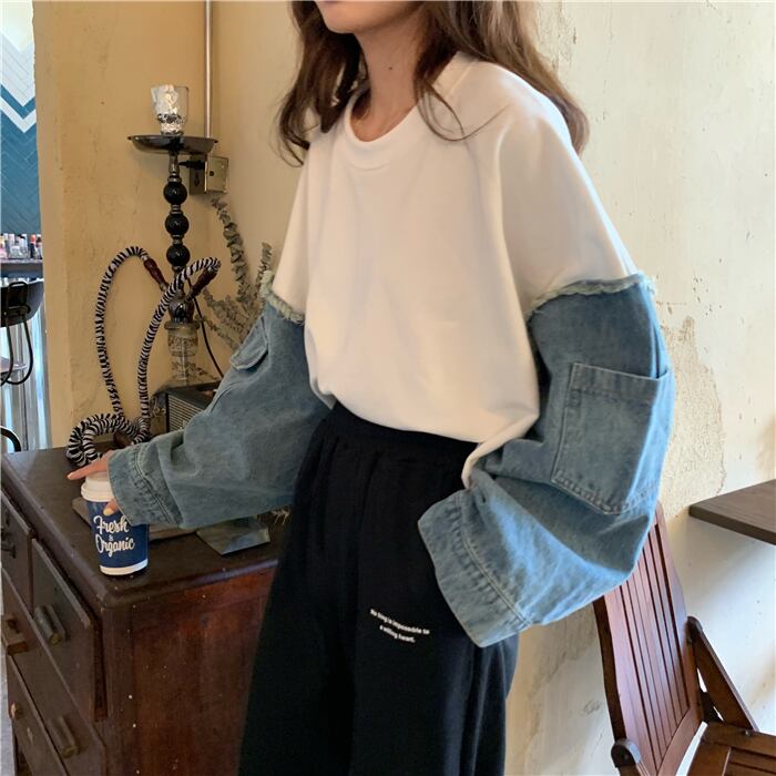 切り替えデザイントップス トップス プルオーバー ショート ショート丈 袖あり 長袖 ラウンドネック 切り替えデザイン 切り替えデザイン デニム かわいい 大人可愛い きれいめ シンプル カジュアル 大人 上品 おしゃれ お洒落 大人可愛い 大人女子 こなれ感 ラフ ラブリー キュート ガーリー 個性的 モダン 主役級 存在感 無地 春 秋 10代 20代 30代 レディース 学生 通学 デート お出かけ 女子会 休日 着回し 普段使い 重ね着 韓国系 オルチャン 色展開 白 ホワイト 黒 ブラック