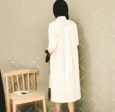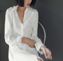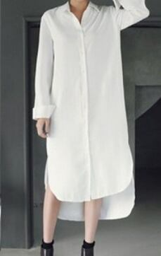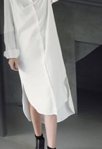 シンプルな白シャツワンピースです。