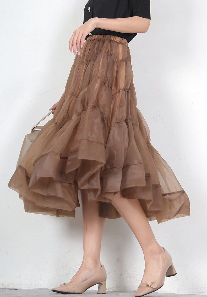 スカート ボトムス チュチュスk-ト ひざ丈 フレア Aライン ふわふわ ハイウエスト きれいめ シンプル 上品 おしゃれ 大人女子 ラブリー キュート セクシー エレガント 主役級 無地 春 夏 2022 20代 30代 レディース デート 休日 パーティー イベント ホテル レストラン 着回し モテ 体系カバー 美脚 脚長 新作 インスタ映え サイズ S M L XL 色展開 ブラウン