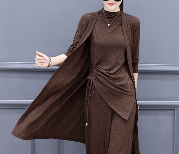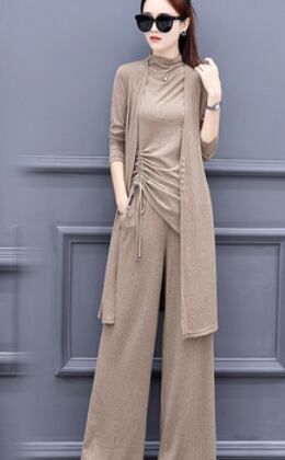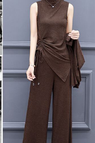 ハイネックトングトップスとパンツとカーディガンの3点セットです。