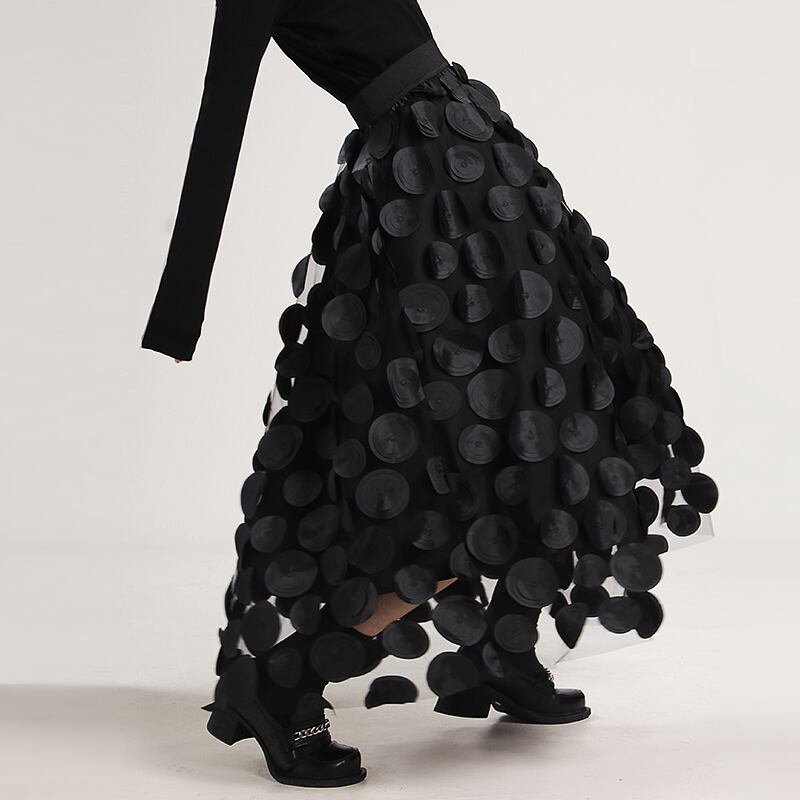 モード感が強い、個性的なロングスカートです。黒で統一した、ブラックコーデがおすすめです。ドレッシーなシャツやブラウスを合わせて、ゴシック調に仕上げても存在感がありますよ。