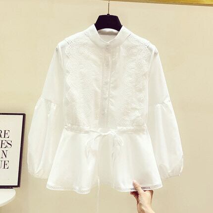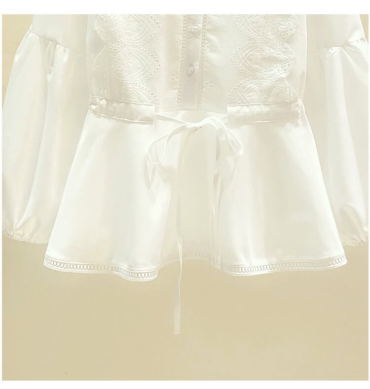レースブラウス トップス ブラウス 袖あり 長袖 スタンドカラー ドッキング レース ウエストマーク ウエストリボン 前開き かわいい 大人可愛い きれいめ シンプル カジュアル 大人 上品 おしゃれ お洒落 大人可愛い 大人女子 こなれ感 ラフ ラブリー キュート ガーリー 個性的 モダン 主役級 存在感 無地 春 秋 10代 20代 30代 レディース OL 通勤 学生 通学 デート お出かけ 女子会 休日 着回し 普段使い 重ね着 サイズ S M L XL 2XL 色展開 白 ホワイト