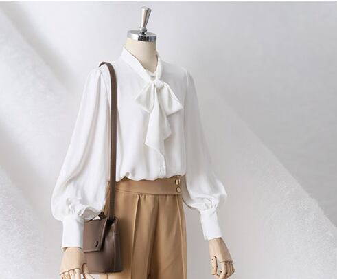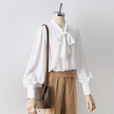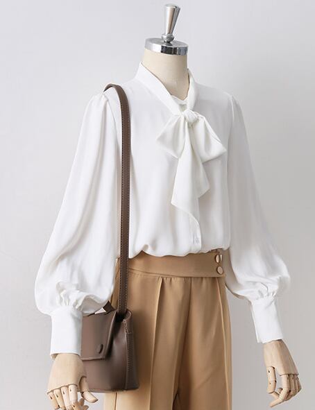 なめらかな生地感とリボンデザインがフェミニンさを引き出すブラウス。