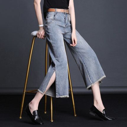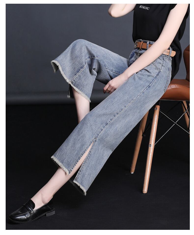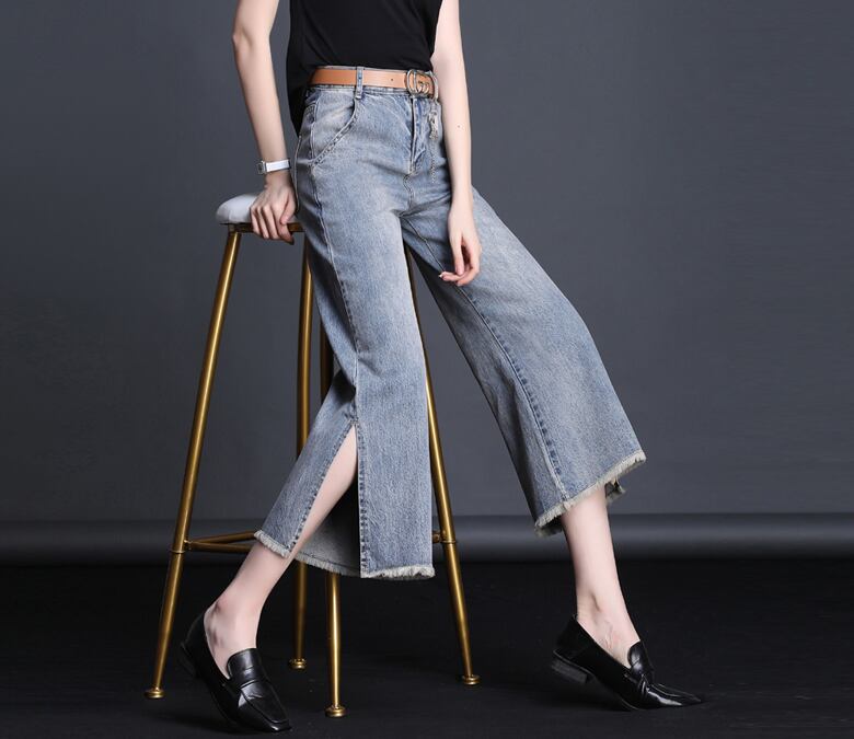 ワイドデニムパンツ ボトムス パンツ クロップドパンツ デニムパンツ ワイド スリット サイドスリット ハイウエスト デニム かわいい 大人可愛い きれいめ シンプル カジュアル 大人 上品 おしゃれ お洒落 大人可愛い 大人女子 こなれ感 ラフ ラブリー キュート ガーリー 個性的 モダン 主役級 存在感 無地 春 夏 秋 10代 20代 30代 レディース 学生 通学 デート お出かけ 女子会 休日 着回し 普段使い 韓国系 オルチャン サイズ S M L XL 2XL 色展開 青 ブルー