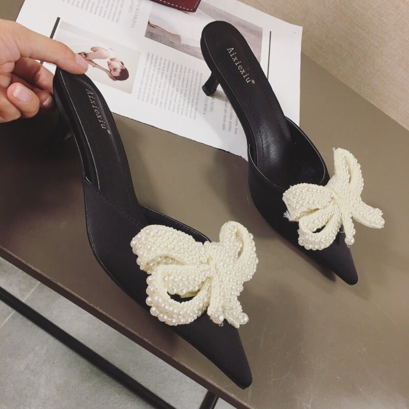 ポインテッドトゥ パンプス ミュール レディースパンプス ヒール 5cmヒール リボン 履きやすい 美脚 かわいい 大人可愛い きれいめ おしゃれ ラブリー キュート 大人っぽい 女っぽ セクシー 存在感 無地 春 夏 2022 10代 20代 30代 レディース デート お出かけ 女子会 休日 パーティー イベント デイリー オルチャン モテ 新作 インスタ映え 色展開 ブラック ショッキングピンク