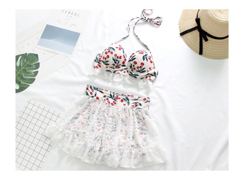 水着 ビキニ スイムウェア 三角ビキニ 体系カバー水着 ショートパンツ セパレート ホルターネック オフショルダー 体系カバー 半袖 レース 伸縮性 上下セット 3点セット スリーピース かわいい 存在感 ガーリー 花柄 10代 20代 レディース 女性用 女の子 M L XL 白 ホワイト