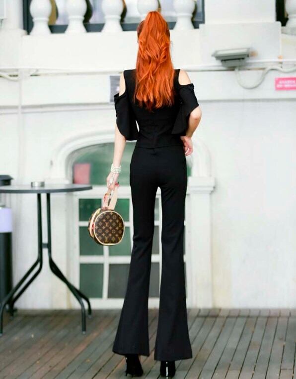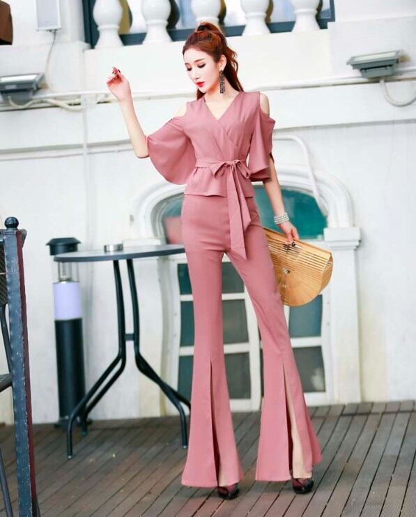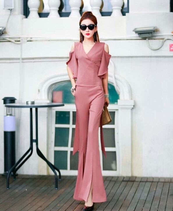 肩だしのスリムな上下セット
