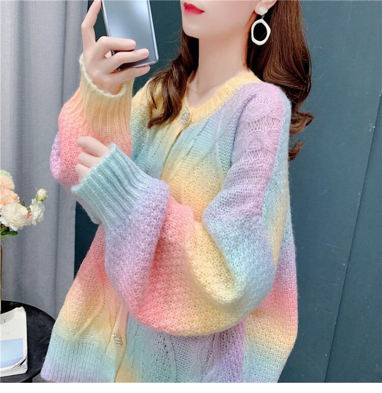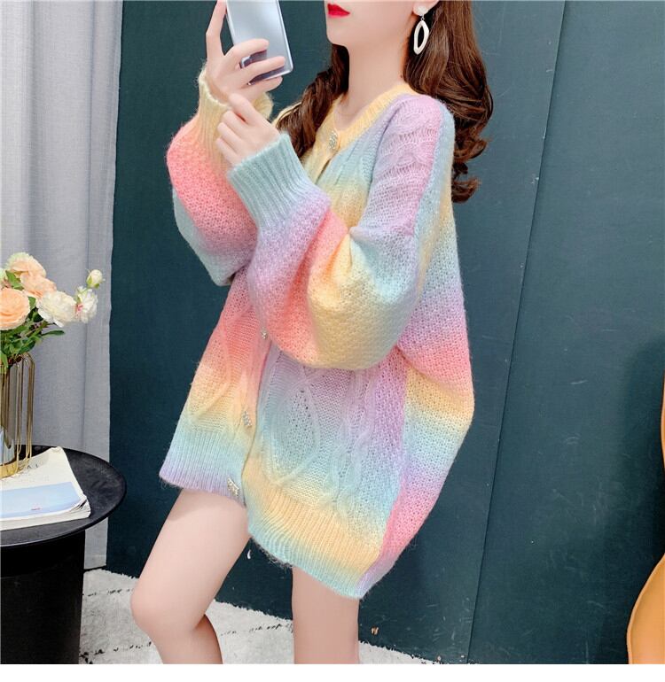 パステルカラーの長袖カーディガン。
