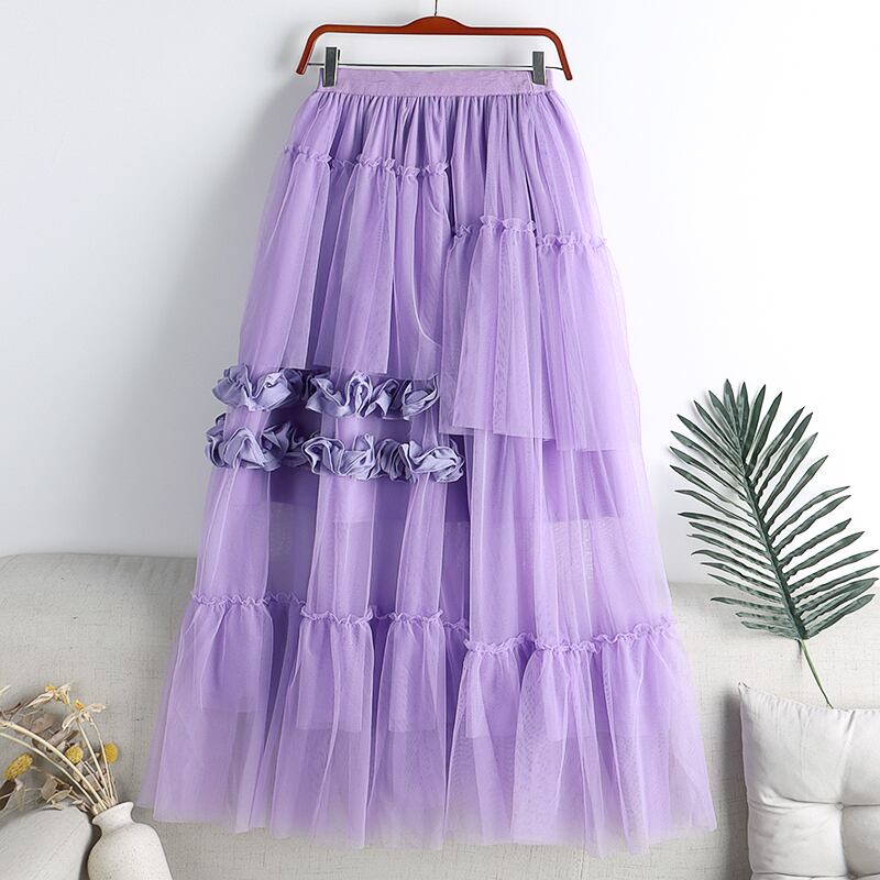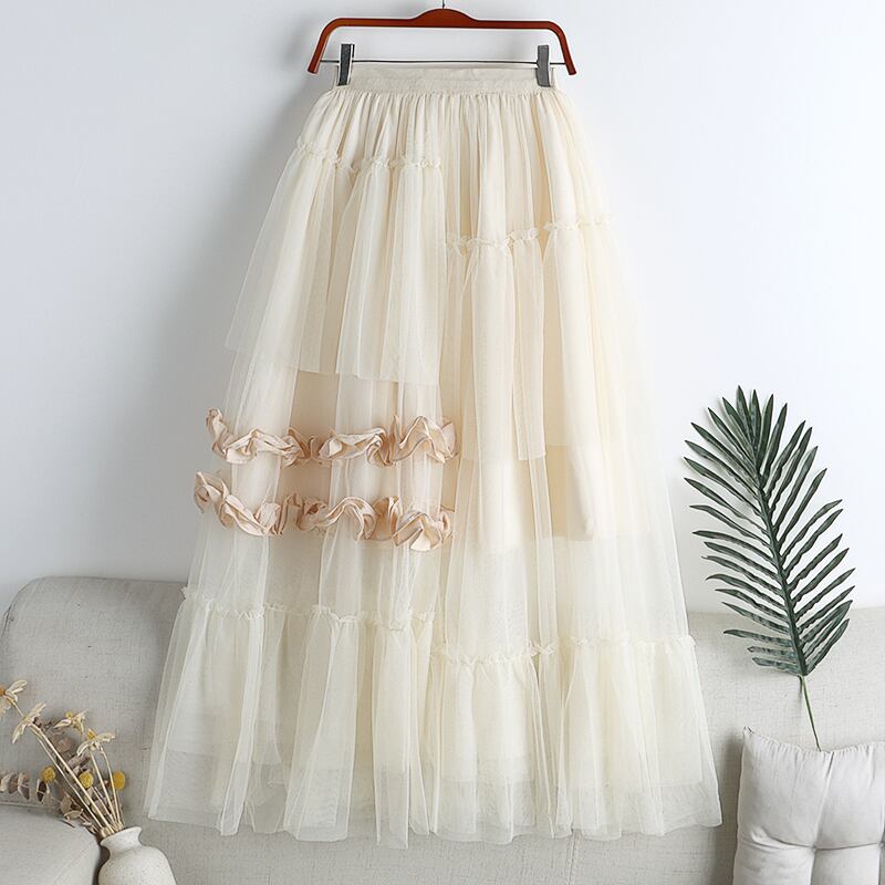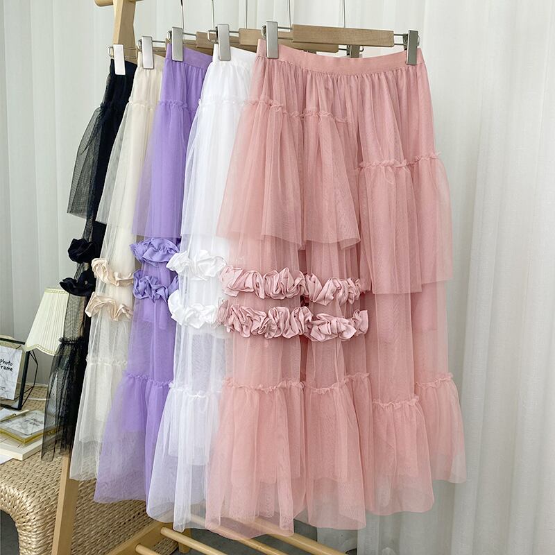 ティアードデザインに縦長シルエットが大人可愛いチュールスカート。
