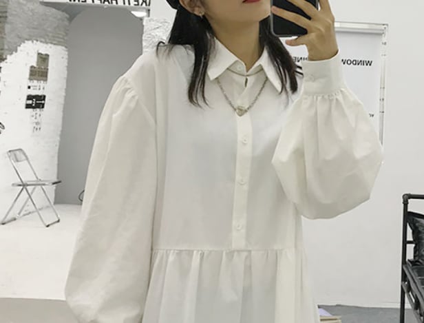 ゆったりサイズでの長袖シャツロングワンピースです。