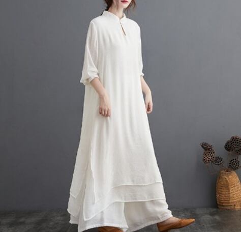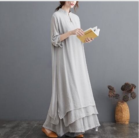 ゆったりロングワンピースセット ワンピース ロング丈 袖あり Aライン スリット 綿 爽やか 大人スタイル かわいい 大人可愛い きれいめ シンプル カジュアル 大人 上品 おしゃれ かっこいい レトロ アジアン 大人可愛い 大人女子 ラフ ラブリー キュート 無地 春 夏 10代 20代 30代 40代 50代 レディース ママ 女の子 通勤 学生 通学 デート お出かけ 公園デビュー 女子会 イベント リゾート 旅行 着回し 普段使い コーデ スタイル 楽ちん モテ M L XL 2XL 大きめ