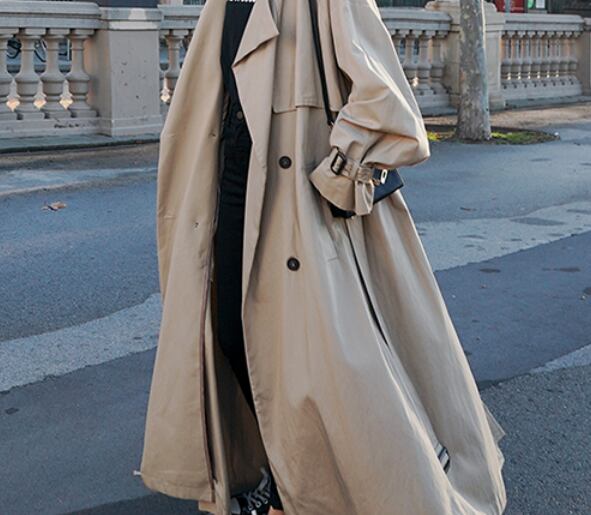 オーバーサイズのロング丈トレンチコートです。